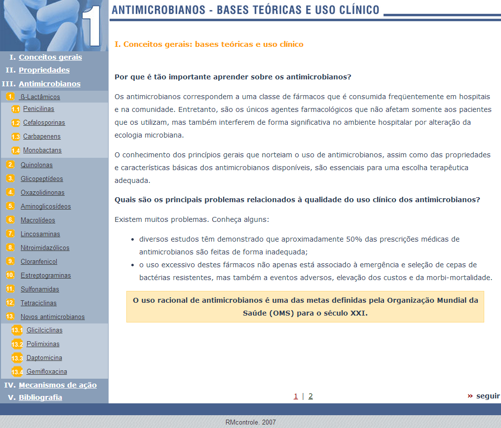 Este módulo é super útil para relembrarmos informações sobre os antimicrobianos e até para montar treinamentos e aulas.